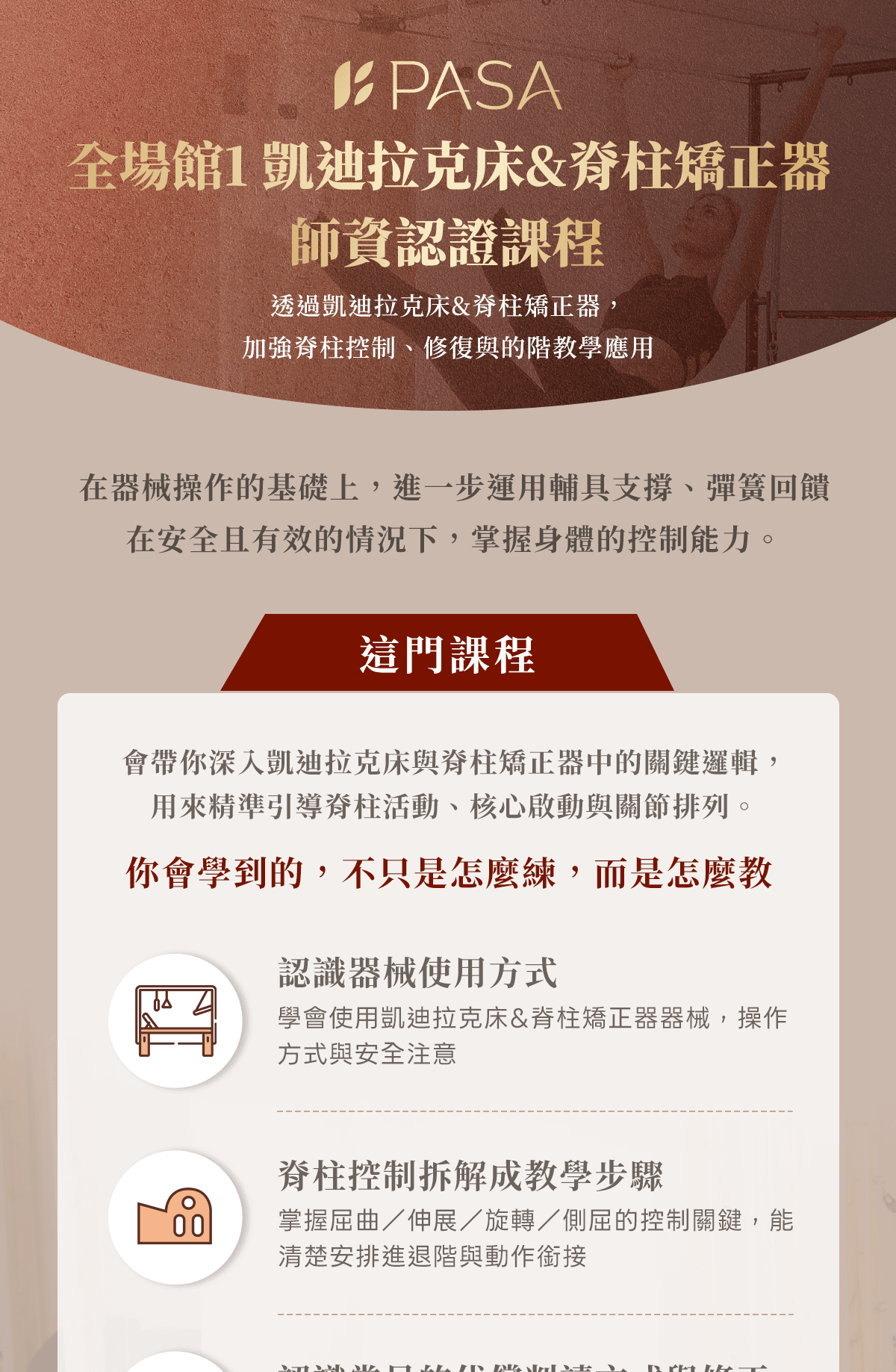 《全場館1 凱迪拉克床&脊柱矯正器 師資認證課程》