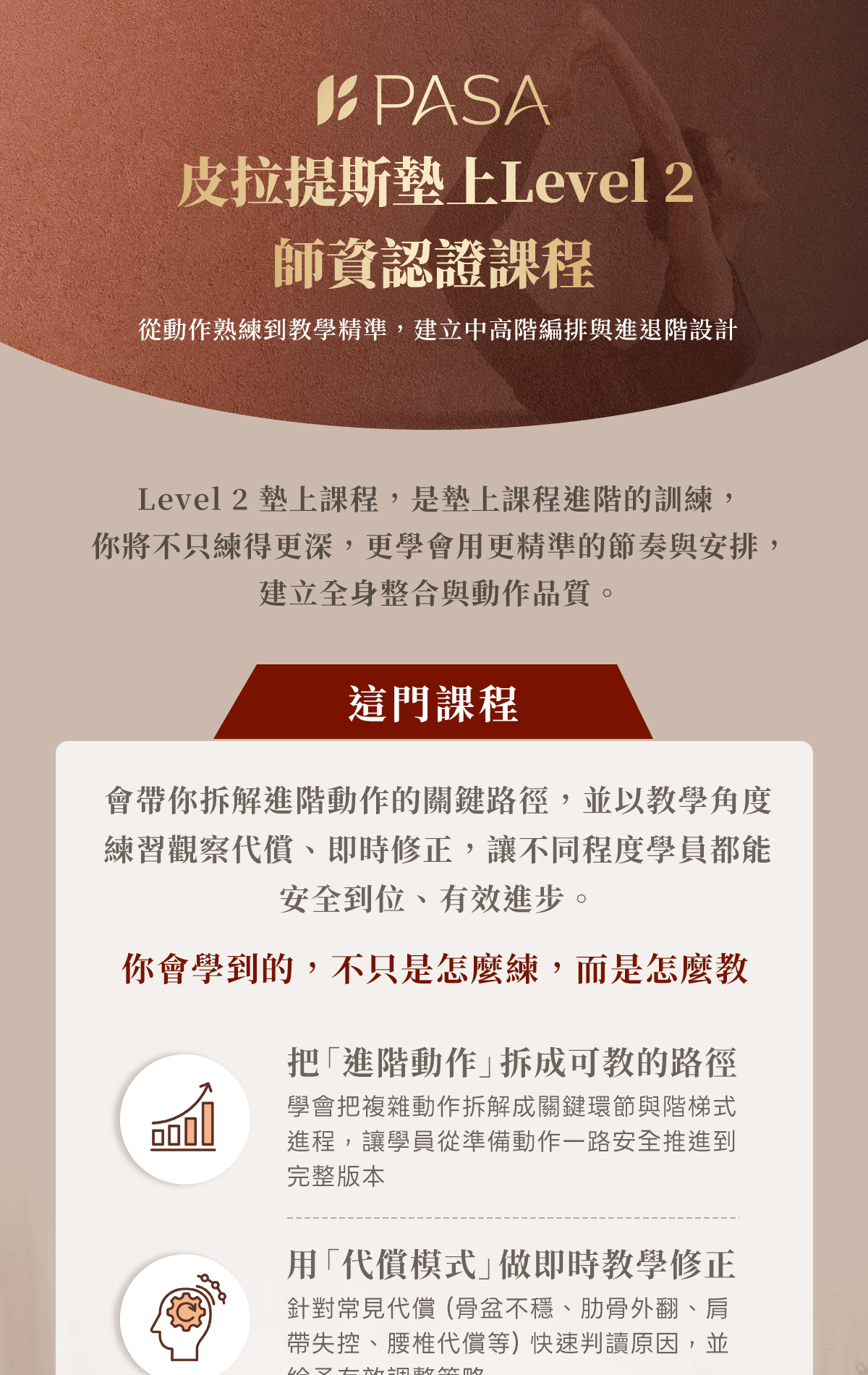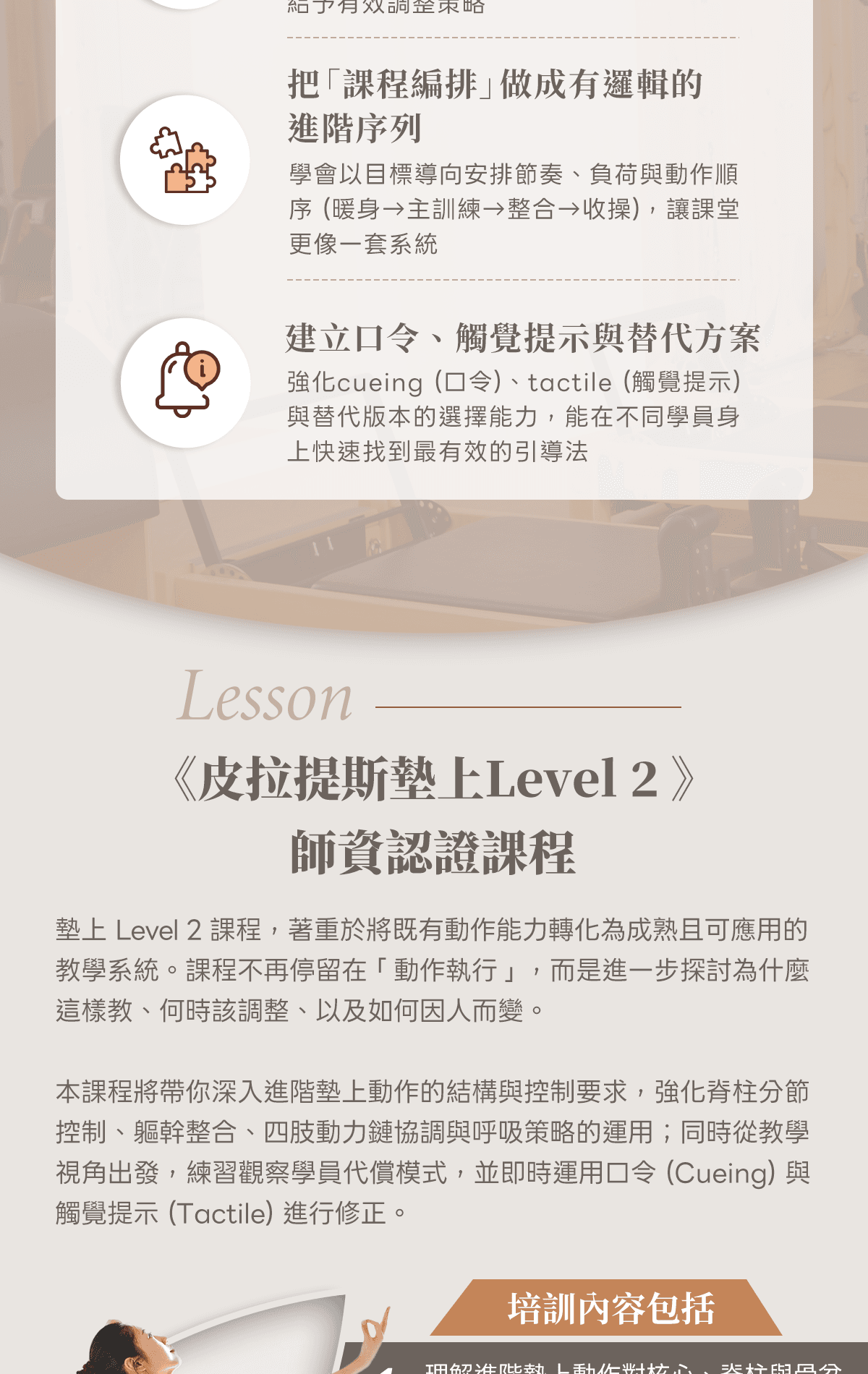 墊上 Level 2 課程,著重於將既有動作能力轉化為成熟且可應用的教學系統。