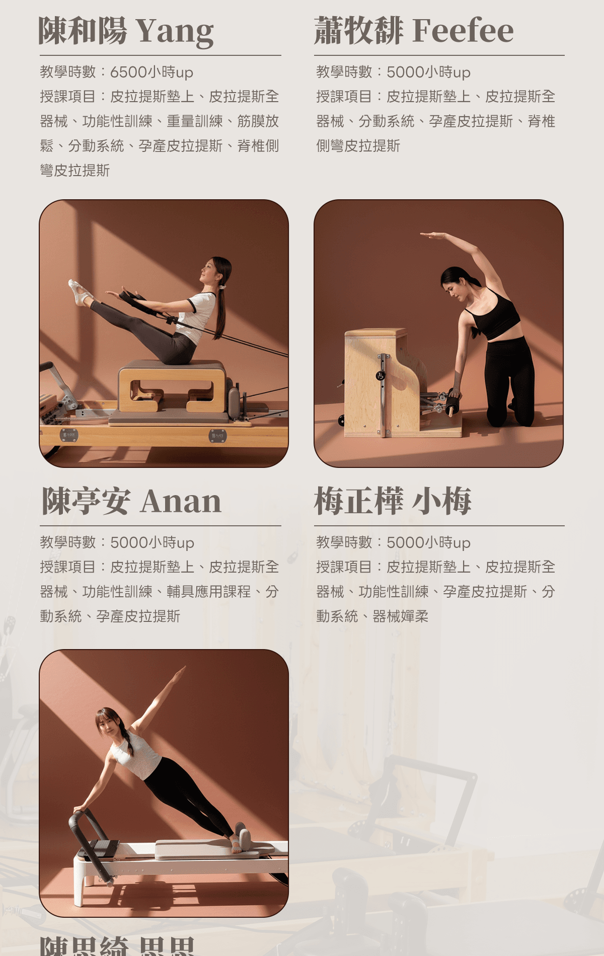 本課程將帶你深入進階墊上動作的結構與控制要求,強化脊柱分節控制、軀幹整合、四肢動力鏈協調與呼吸策略的運用;同時從教學視角出發,練習觀察學員代償模式,並即時運用口令(Cueing)與觸覺提示(Tactile)進行修正。