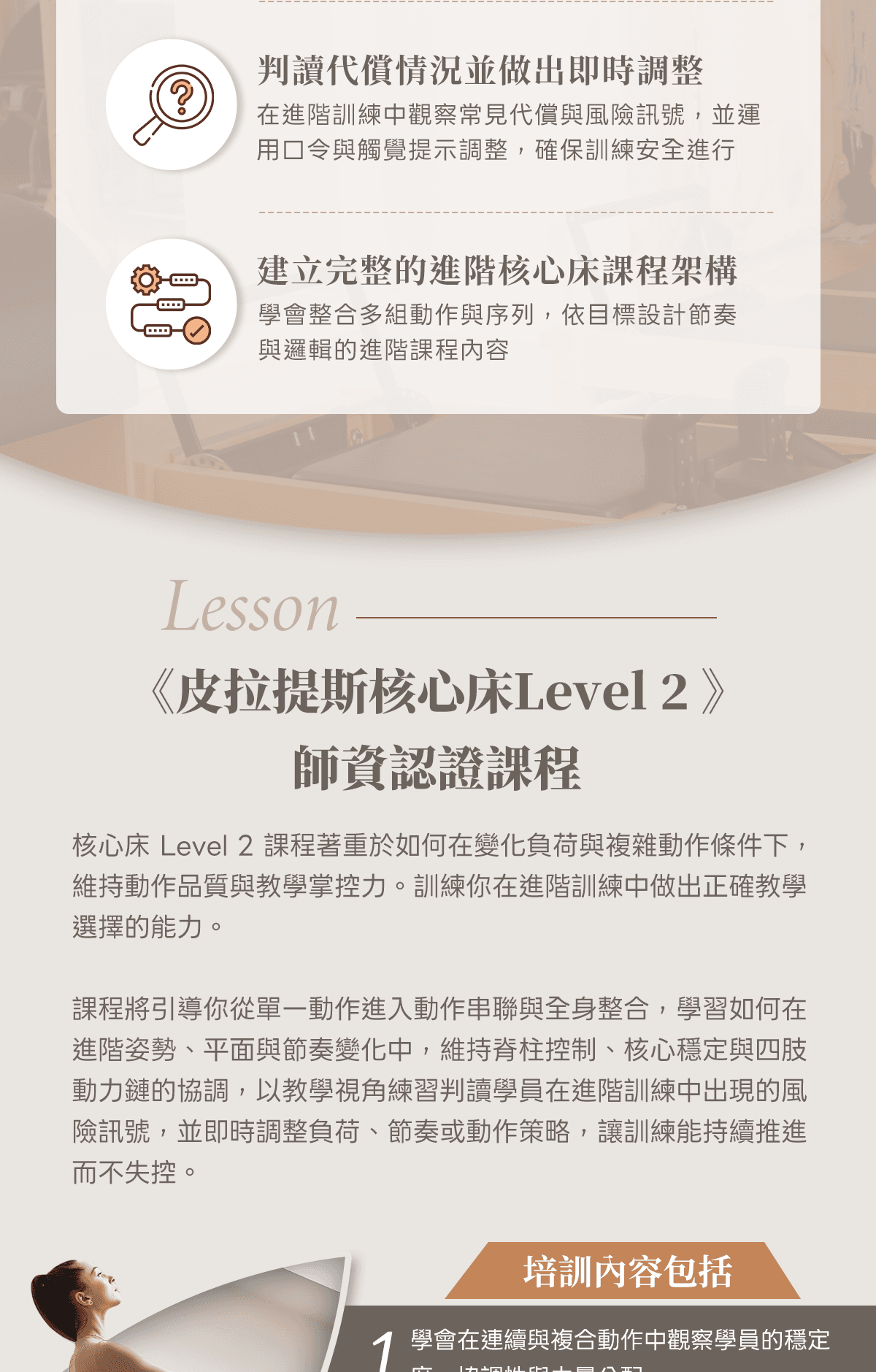 搶先評價 “皮拉提斯核心床LEVEL2 師資認證課”