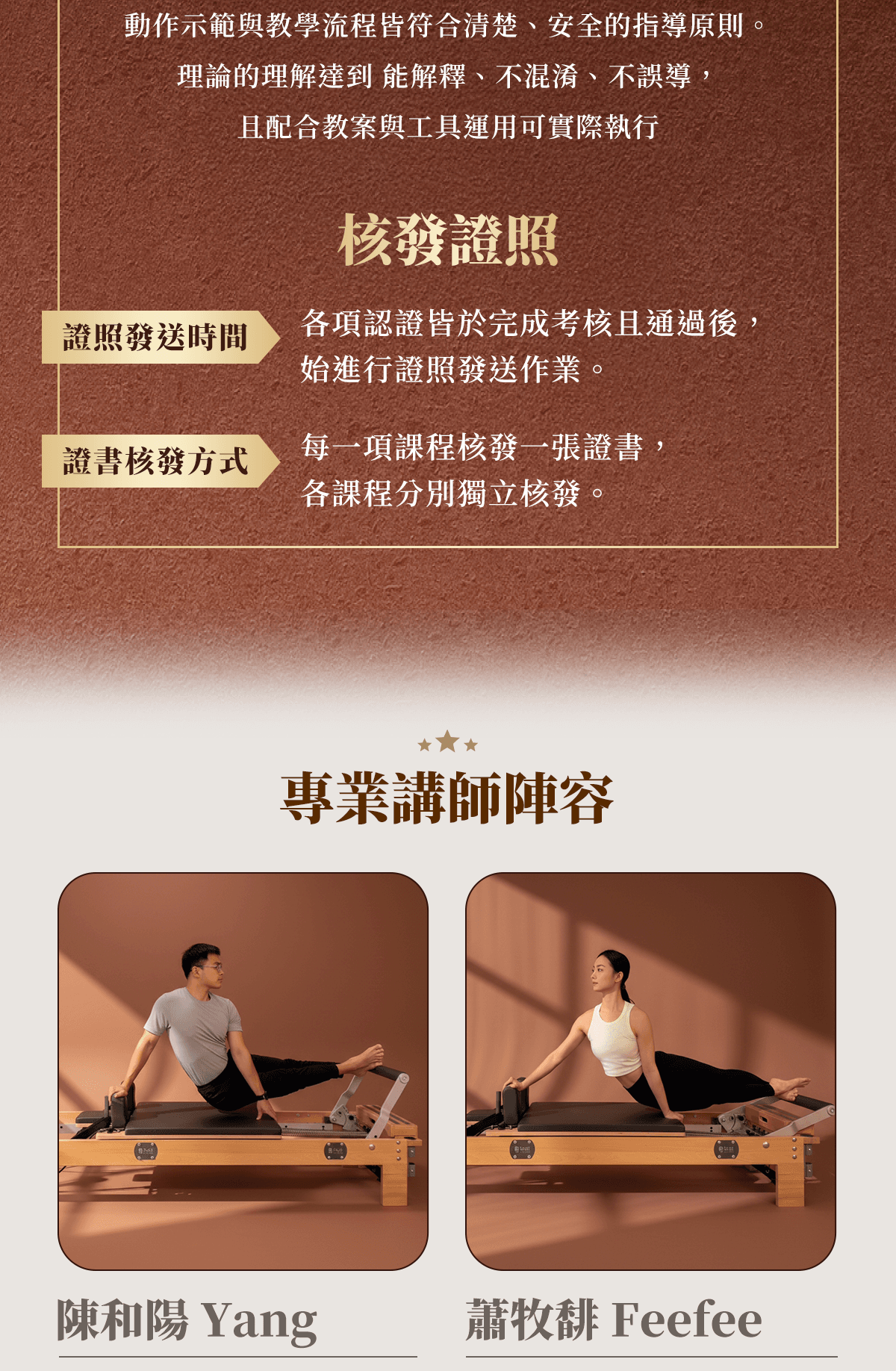 我們的評核標準,重點在於是否具備基礎教學能力、動作示範與教學流程皆符合清楚、安全的指導原則。